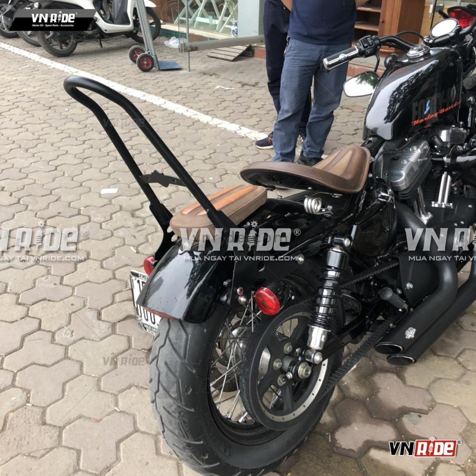 Tựa lưng mẫu 2 ( Đen / Crom ) lắp đặt lên các đời xe Harley Davidson IRON 883 / FORTY-EIGHT (48) / Sportster 1200 CUSTOM trực tiếp không cần độ chế.