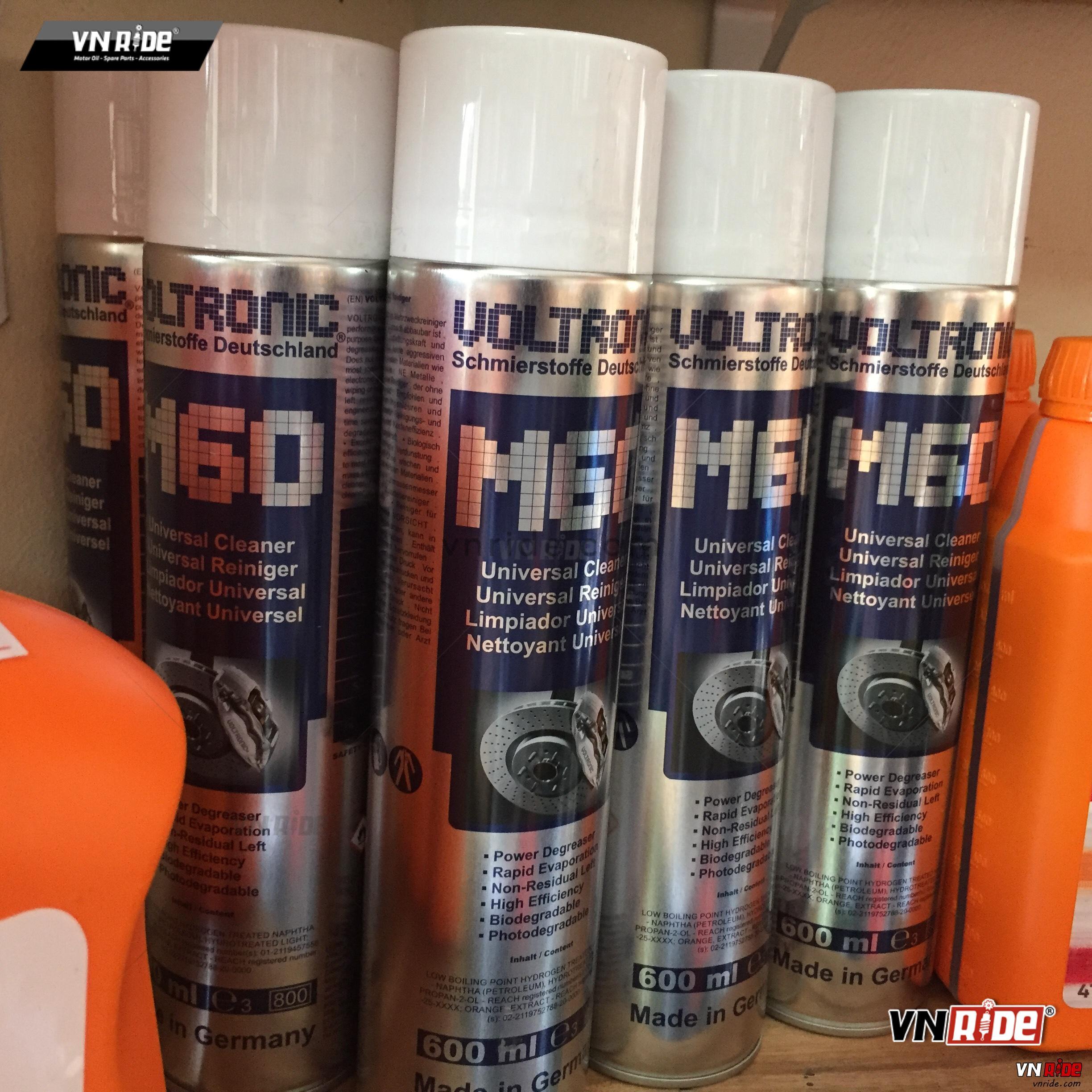 Mua ngay Xịt vệ sinh xích đa năng Voltronic M60 Universal Cleaner (600ml) tại Phụ tùng đồ chơi moto VNRIDE ®. Chuyên cung cấp các sản phẩm phụ tùng đồ chơi xe moto PKL, bảo hành 1 đổi 1 ♥.
